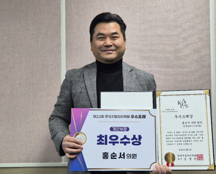 6일 의회에 따르면 홍순서 의원의 이번 수상은 서구의회뿐만 아니라 인천지역 지방의회의 위상을 한 단계 높인 쾌거로 평가받는다.