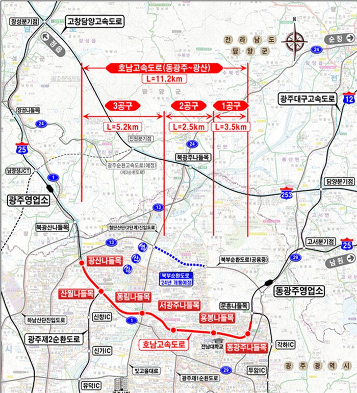 동광주IC⁓광산IC 총 11.2㎞ 6차로 확장 추진