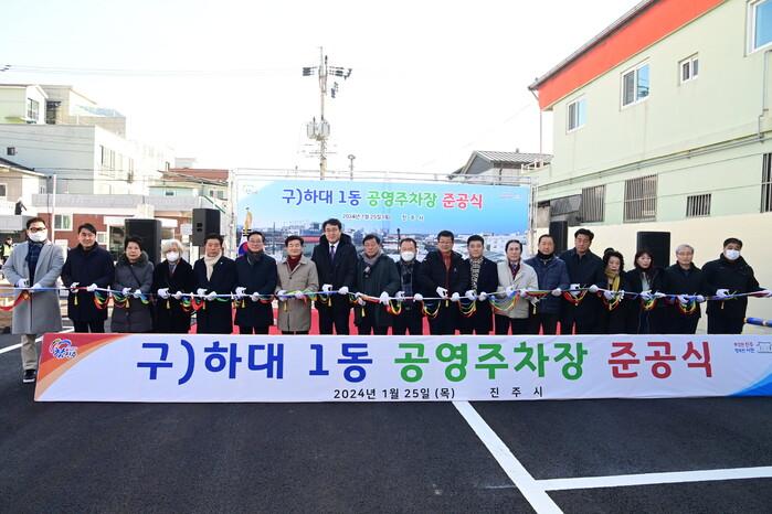 진주시가 하대동 상가지역 및 공동주택의 만성적인 불법 주정차와 주차 불편 해소를 위해 추진한 ‘구)하대1동 공영주차장’ 조성을 완료하고 25일 준공식을 개최했다.