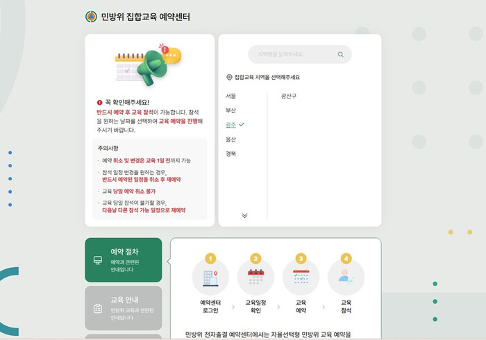 | ▲ 민방위교육 예약시스템 이미지 / 광주광역시 광산구 제공 |