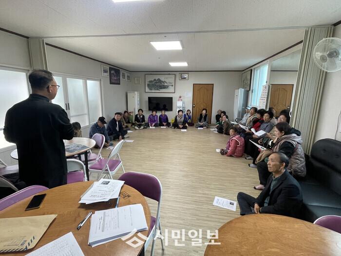 | ▲ 죽산마을회관 지적재조사사업 주민설명회 자료시진 / 강진군 제공 |