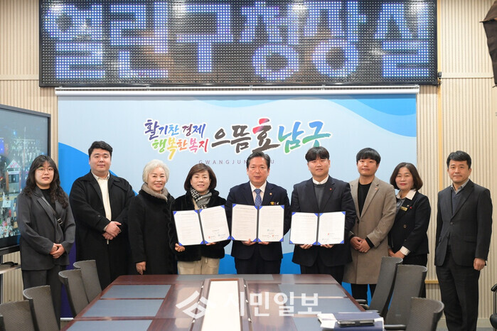 이와 관련해 남구는 지난 10일 오전 구청 1층 민원실에서 장애아동 발달 지원을 위한 성장 놀이터 홈서비스 업무를 위해 김병내 구청장은 김동관 세이브더칠드런 서부지역본부장, 박지현 행복발달코칭센터 대표와 협약식을 가졌다.