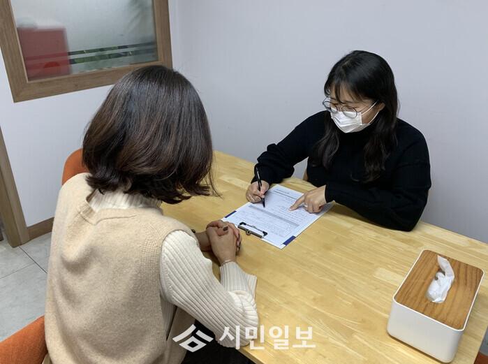 | ▲ 광산구의 한 시민이 전문 심리상담사로부터 심리 리스트 체크를 하고 있다. / 광산구청 제공 |