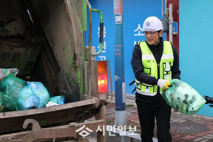 특히, 현장 근무자들과 생활 쓰레기 수거 차량에 탑승해 주거 밀집지역과 상가 지역을 수거 작업을 함께 하며 무단투기 실태, 분리배출 미이행 사례, 현장 안전 및 근무 여건 확인 등을 놓고 이야기를 나눴다.