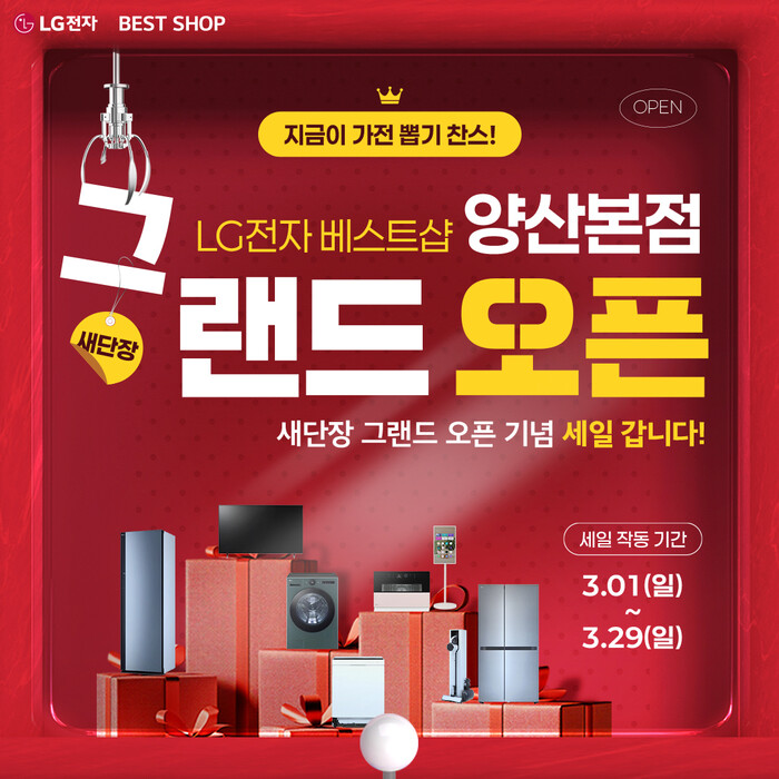 매장 관계자는 “이번 새단장 그랜드 오픈은 단순한 매장 리뉴얼을 넘어 양산 지역 고객들에게 실질적이고 차별화된 구매 경험을 선사하기 위해 기획되었다”며 “웨딩이나 입주, 가전 교체 수요가 있는 고객들이라면 이번 기회를 통해 최적의 조건으로 상담받아 보시길 바란다”고 전했다.