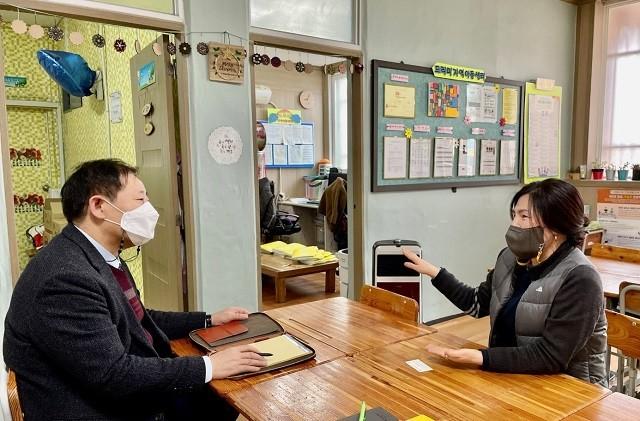 | ▲ 조영천 해남교육지원청 교육장, 해남지역아동센터 방문, 관계자 애로사항 청취 / 사진=해남교육지원청 제공 |