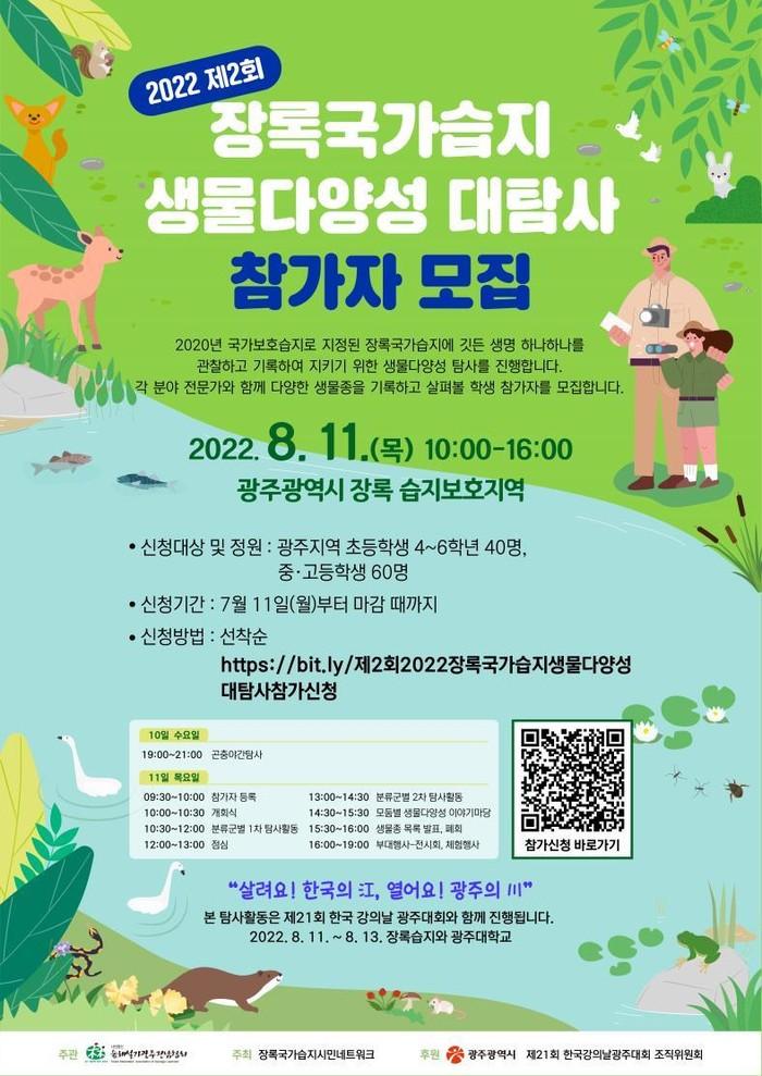 | ▲ 2022 제2회 장록국가습지 생물다양성 대탐사 참가자 모집 포스터 / 광주광역시 제공 |