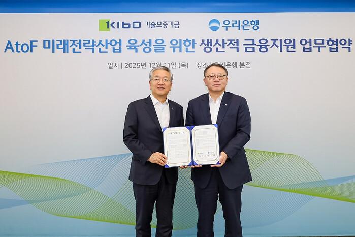 [부산=최성일 기자] 기술보증기금(이사장 김종호, 이하 ‘기보’)은 11일(목) 우리은행 본점에서 우리은행(은행장 정진완)과「AtoF 미래전략산업 육성을 위한 생산적 금융지원 업무협약」을 체결했다고 밝혔다.