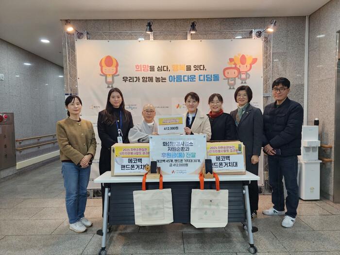 [화성=송윤근 기자] 경기 화성특례시(시장 정명근)가 지난 16일 화성시아르딤복지관에 2025년 자원순환실천 시민봉사활동으로 마련된 에코백·핸드폰거치대와 재활용나눔장터 활동으로 마련된 기부금 40만 원을 전달했다.