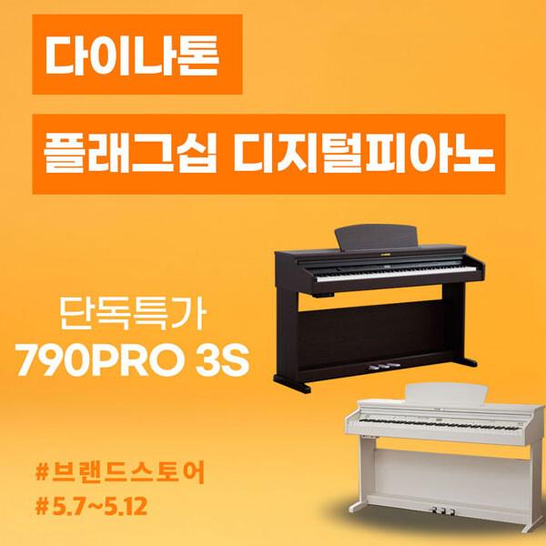 790PRO 3S는 프리미엄 디지털피아노 중에서도 최고사양 디지털피아노로 다이나톤의 플래그십(대표하는) 모델이라고 할 수 있다. 특히 4Gbit 고용량 사운드뱅크를 탑재한 것이 특징이고 256 동시발음 수를 자랑하며, 블루투스 기능, 음악파일 재생기능, 하프페달 기능 등 다양하고 실용적인 기능이 내장되어 있어 출시 후 많은 인기를 끌고 있다.