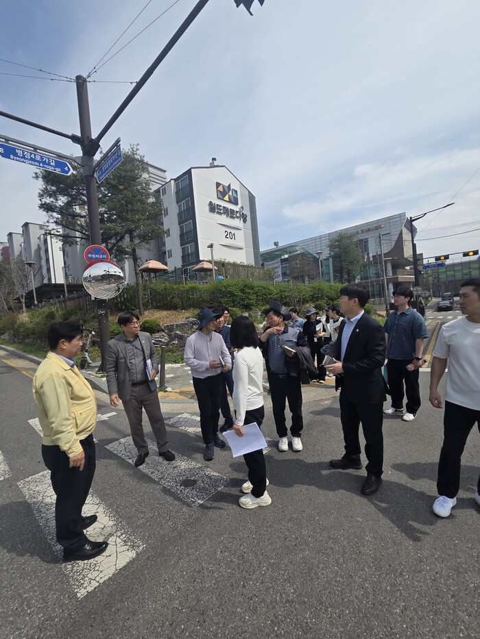 | ▲ 병점구청장을 비롯한 관계 공무원들이 ‘로드아이(RDAI)’ 활동의 일환으로 현장 점검을 실시하고 있다 /사진제공=화성특례시 |