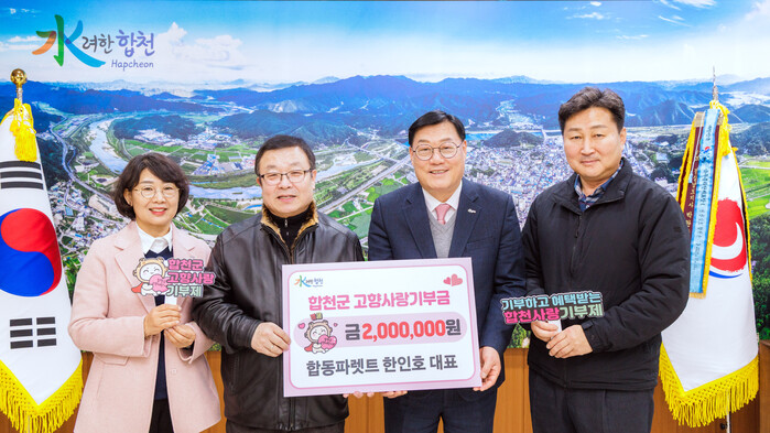 김윤철 합천군수는 “3년 동안 변함없는 마음으로 고향사랑기부에 동참해 준 한인호 대표에게 깊이 감사드린다”며 “기부자의 뜻이 군민의 삶에 실질적인 도움이 될 수 있도록 기부금은 투명하고 책임 있게 활용하겠다”고 말했다.