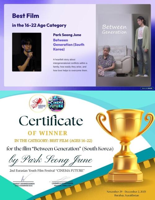 해당 영화제는 지난 12월 2일 카자흐스탄에서 개최된 국제 청소년 영화제로, 전 세계 청소년 영화인들이 참여하는 권위 있는 행사다.