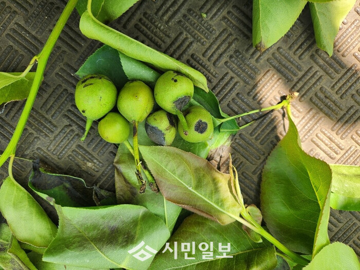 | ▲ 봄철 잦은 비로 흑성병 피해를 입은 영암산 배 자료사진 / 영암군 제공 |