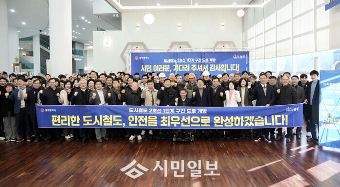 광주광역시(시장 강기정)는 이날 시청 시민홀에서 ‘광주도시철도 2호선 1단계 구간 도로개방 현장 확인’ 행사를 열고, 그동안의 공사 추진 경과와 현재 공정 현황, 향후 계획을 시민들과 공유했다.