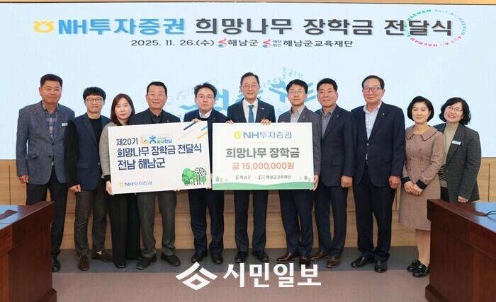 명현관 군수는 “NH투자증권의 지역 인재 양성을 위한 관심과 지원에 진심으로 감사드린다”며 “이번에 전달받은 장학금을 통해 어려운 환경 속에서도 학업에 정진하는 우리 해남군 학생들에게 큰 힘이 되고, 미래를 향한 희망의 씨앗이 될 것이다”고 전했다.