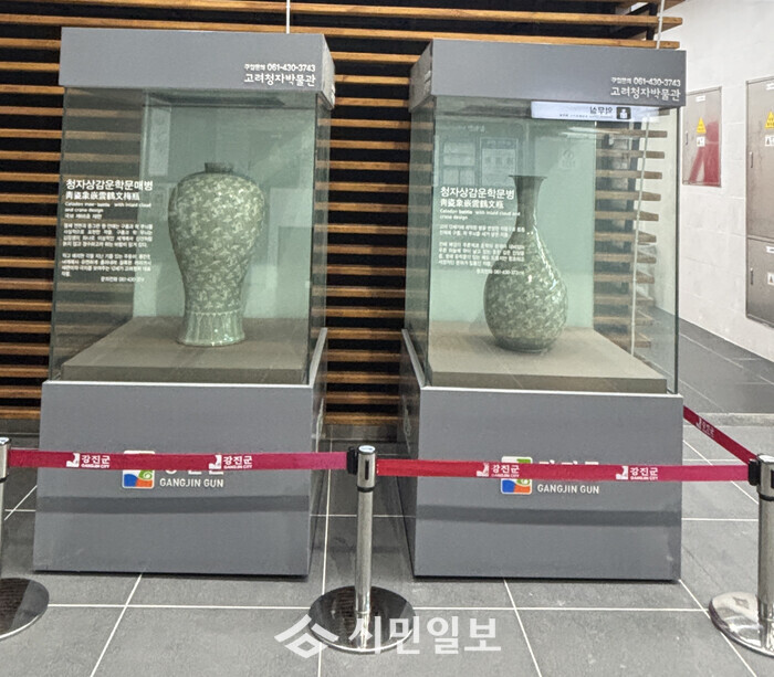 전시된 청자 두 점은 높이 70cm가 넘는 대형작품이다. 또한 청자에 적용된 ‘운학문’ 문양은 고려청자의 대표적인 상감 기법을 통해 구름 위를 나는 학의 모습을 섬세하고 아름다운 선으로 표현된 기법이다.