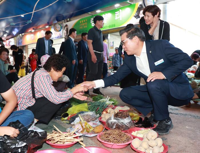 진 군수는 27일 함양읍 장날을 맞아 지리산함양시장을 방문해 ‘공무원 시장가는 날’과 ‘소비촉진 캠페인’의 일환으로 장보기 행사를 진행했다. 간부공무원 등 관계자 50여명도 소그룹으로 함께 동참했다.