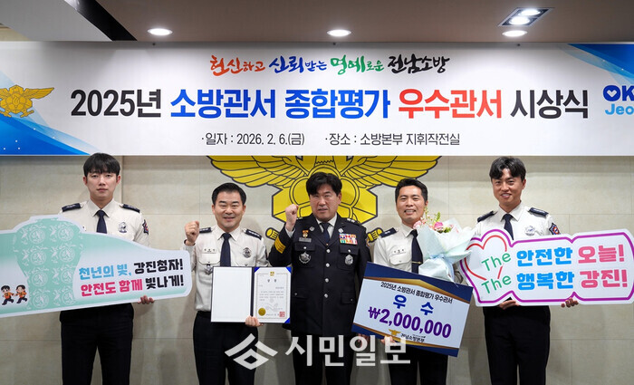 한편, 이날 시상식에는 도내 7개 소방서가 참석했으며, 우수 관서로 선정된 강진소방서는 도지사 표창과 함께 포상을 받았다.