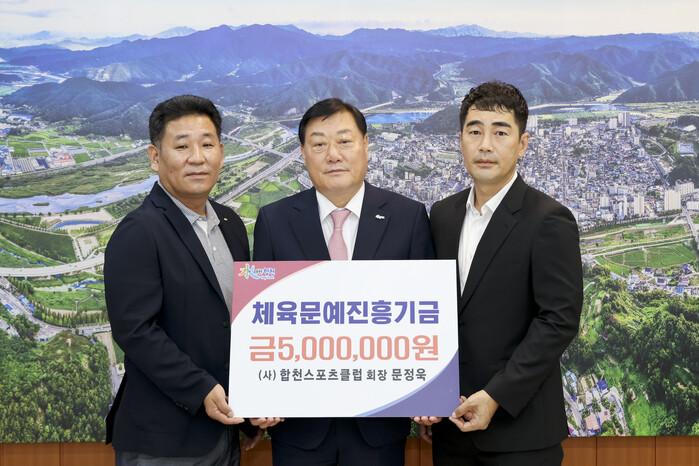 문정욱 회장은 “합천의 체육에 관심이 많았는데, 이번 기회를 통해 합천 체육이 더욱 발전할 수 있도록 작은 도움이라도 줄 수 있게 되어 영광이다”면서 기탁 소감을 밝혔다.