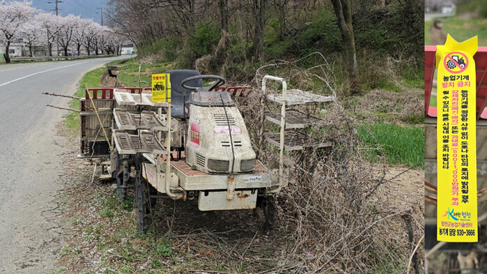 방치 농기계에 대해서는 ‘농업기계화 촉진법’에 따라 일정한 장소로 이동 조치한 뒤, 소유자에게 자진회수나 폐기 조치를 명령하고, 이를 이행하지 않을 경우, 매각 또는 폐기 등 강제 처리를 진행할 방침이다.