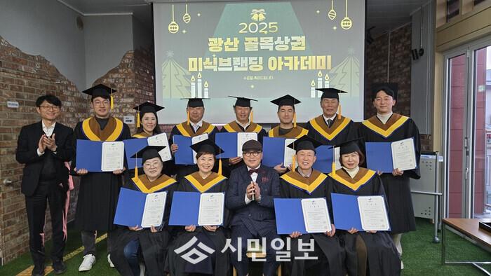 | ▲ '2025 광산 골목상권 미식브랜딩 아카데미 수료식' 기념촬영 / 광산구청 제공 |