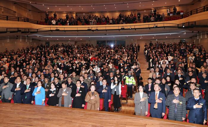 평택시는 18일 오후 고덕동 함박산 중앙공원에 조성된 평택아트센터 대공연장에서 준공식을 개최했다. 이날 행사에는 시장을 비롯해 국·도·시의원, 관계기관·단체장, 지역 주민 등 1300여 명이 참석해 준공을 함께 축하했다.