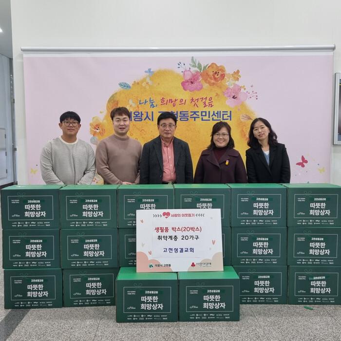 [의왕=송윤근 기자] 경기 의왕시 고천성결교회가 12월 18일 의왕시 고천동주민센터를 방문해 지역사회 취약계층을 위해 사용해 달라며 연말 생필품박스 20박스를 기탁했다.