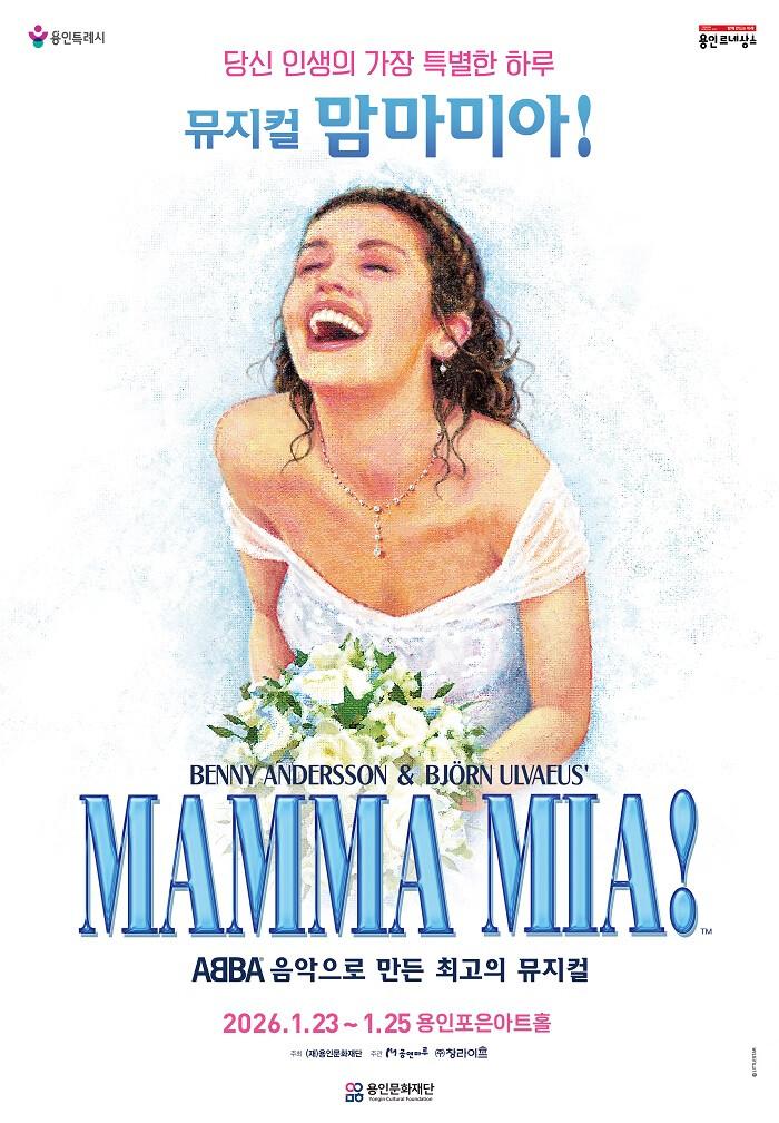 [용인=오왕석 기자] 용인문화재단(이사장 이상일)은 오는 2026년 1월 23일(금)부터 25일(일)까지 뮤지컬 ‘맘마미아!’를 용인포은아트홀에서 개최한다고 밝혔다. 관람 연령은 초등학생 이상으로, 겨울방학 기간 가족·친구·연인 등 남녀노소 누구나 함께 즐길 수 있는 대표 뮤지컬을 3일간 총 4회에 걸쳐 선보인다.