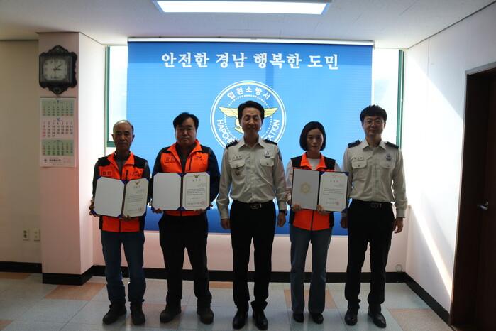 이날 수여식에는 가야면 남성의용소방대 홍성팔 대장, 기술전문 의용소방대 정현봉 대장을 비롯하여, 새로 입대한 삼가면 여성의용소방대 강영미 대원에게 임명장을 수여했다.