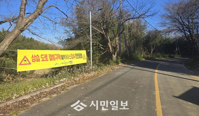| ▲ 영암군, 겨울철 폭설 및 한파 상습 결빙 구간 감속 운전 현수막 게첨 / 영암군 제공 |