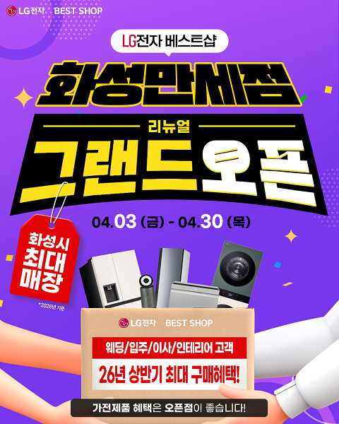 LG전자 베스트샵 화성만세점 관계자는 “리뉴얼 오픈을 기념해 가전 구매를 고려하는 고객들이 다양한 제품을 비교하고 합리적인 조건으로 구매할 수 있도록 이번 행사를 준비했다”며 “특히 혼수, 입주, 이사 등 가전 구매가 필요한 고객들에게 좋은 기회가 될 것으로 기대한다”고 밝혔다.