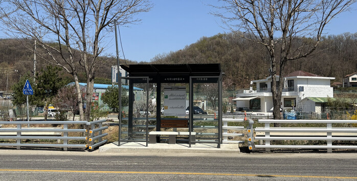 | ▲ 승강장 시설과 온열 의자가 설치된 지곡1새마을교 버스 정류장 |