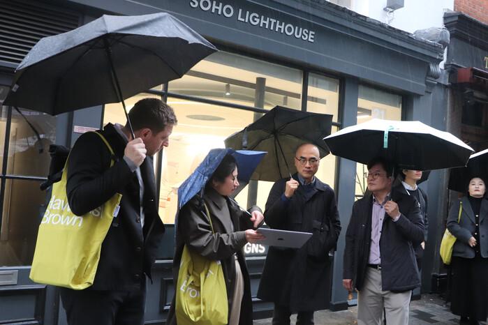 | ▲ 김병수 시장이 런던의 대표적 문화예술거리인 소호거리를 찾아 도시재생 성공 비결과 특징을 살피고 있다. (사진=김포시청 제공) |