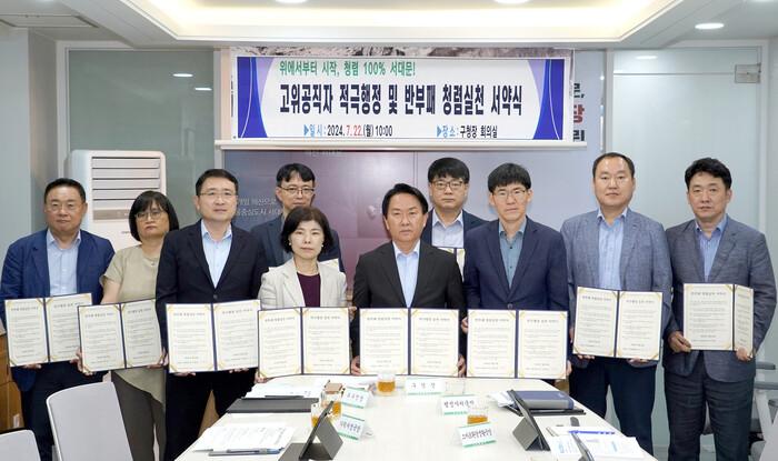 이날 구청장, 부구청장, 행정자치국장, 기획재정국장, 스마트환경생활국장, 복지문화체육국장, 도시정비국장, 안전건설국장, 의회사무국장, 보건소장, 도시관리공단이사장이 참석해 서약서를 낭독하고 서명했다.