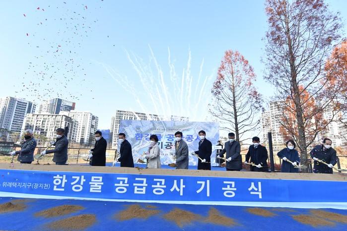 [하남=전용원 기자] 경기 하남시는 지난 25일 서울 송파구 장지천 수변데크에서 하남감일·위례지구에 송파구 한강물을 공급하기 위한 펌프장 및 유지용수관로 공사 기공식을 개최했다고 밝혔다.