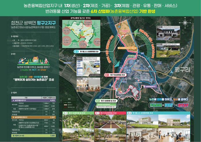 쌍백면에는 ▲농촌마을 보호지구 ▲농촌융복합산업지구 두 개의 구역을 연계하여 농촌마을 보호지구에는 현재 운영중인 계사를 철거하고 마을 주민들에게 농촌다움 회복과 정주여건을 개선하는 마을 상생숲을 제공하고, 농촌융복합산업지구에는 펫-웰니스 상생플랫폼(숙박, 체험시설)을 조성하여 전국에서 유일한 반려동물 친화형 농촌공간 재구조화 및 재생 모델을 성공시켜 나가고자 한다.