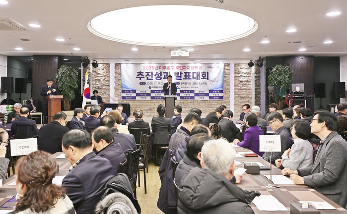 | ▲ 인천 미추홀구 주민자치협의회가 문학동 그랜드오스티엄 블리스홀에서 주민자치 발전을 도모하기 위한 '2025년 주민자치협의회 추진성과 발표대회'를 성공적으로 개최했다. (사진=미추홀구청 제공) |
