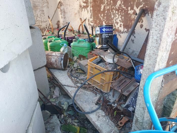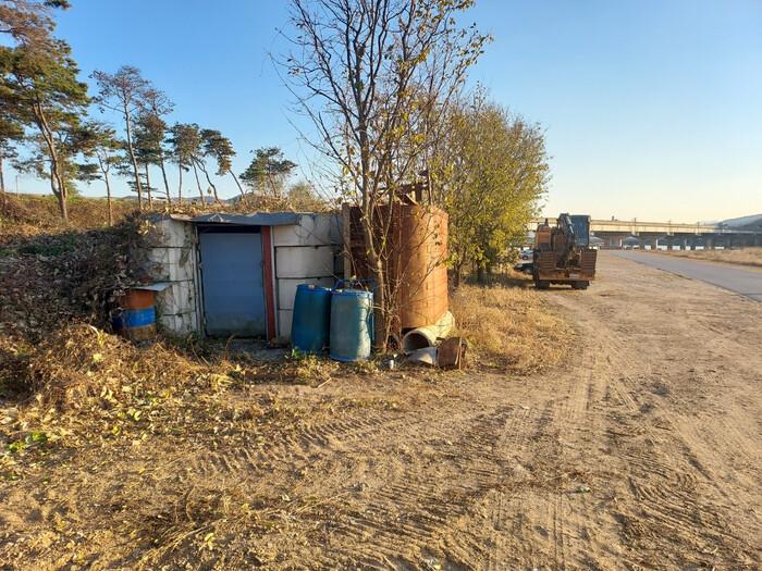 또한 창고엔 오일과 기름통도 함께 보관하면서 성분을 알 수 없는 오일과 기름이 바닥에 그대로 흘러내려 인근 위천 하천변으로 스며들수도 있다는 우려가 나오고 있다.