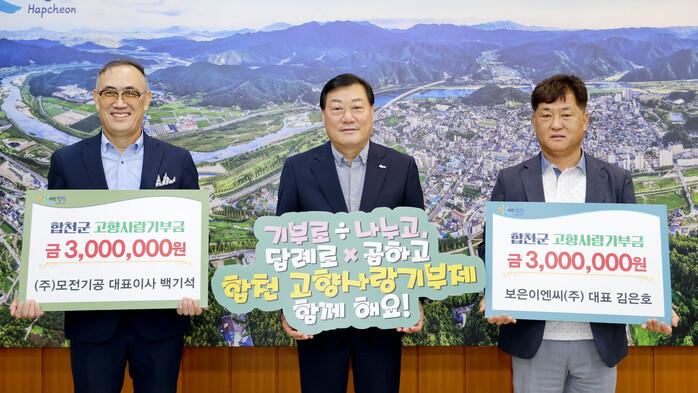 김윤철 합천군수는 “따뜻한 마음을 모아 고향 사랑을 표현해주셔서 깊이 감사드린다”며 “기부금은 꼭 필요한 곳에 사용하여 기부자분들의 마음이 헛되지 않도록 하겠다”고 말했다.
