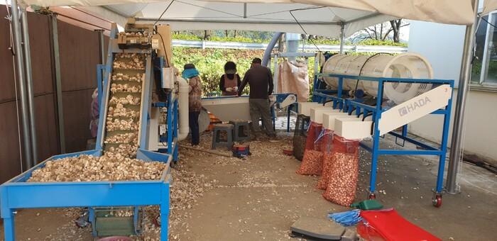 마늘 쪽 분리 일관 선별 시스템은 건조된 마늘을 3번의 쪽 분리 공정을 통해 불량률을 현저히 줄이고 정갈하고 일정하게 마늘을 처리한다. 또한 크기별 선별작업과 마늘껍질 수거까지 가능하게 원스톱으로 진행돼 농촌 일손이 부족한 농가에 획기적으로 노동력 절감이 가능하다.