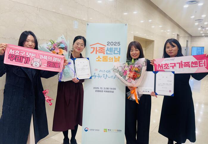 [시민일보 = 박소진 기자] 서초구(구청장 전성수)는 서초구가족센터가 전국 244개 가족센터가 참여한 ‘2025년 가족센터 소통의 날’ 행사에서 가족상담 우수사업 부문 ‘최우수상’, 가족서비스 우수 프로그램 부문 ‘장려상’을 각각 수상했다고 밝혔다.