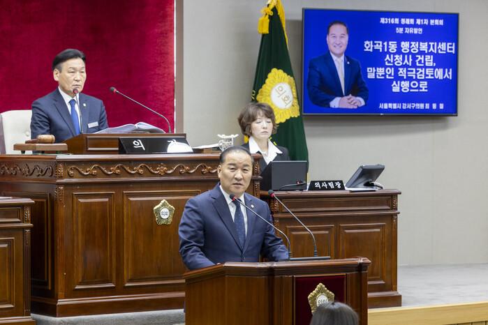 [시민일보 = 박소진 기자] 서울 강서구의회 최동철 의원은 제316회 정례회 5분 자유발언을 통해 17년째 표류 중인 화곡1동 행정복지센터 복합 신청사 건립 문제를 지적하며 구청의 책임 있는 추진을 촉구했다.