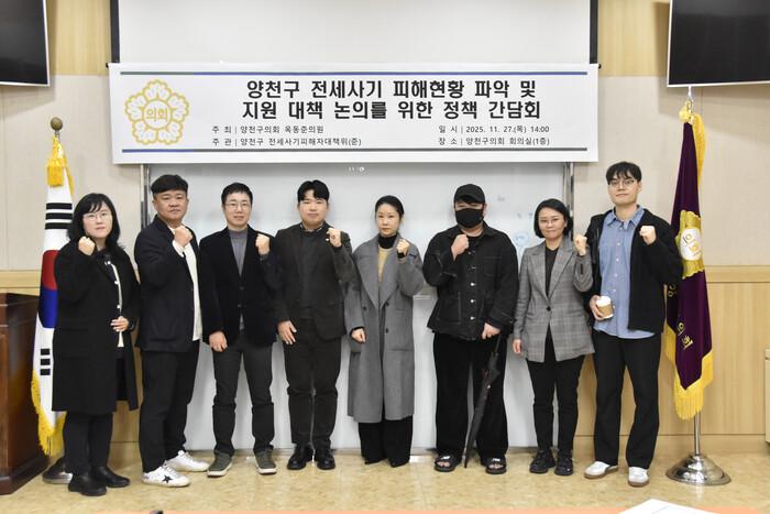 이번 간담회는 지난 4월 옥동준 의원이 대표 발의해 제정된 ‘서울특별시 양천구 전세사기피해자 등 지원 및 주거안정에 관한 조례’의 취지를 기반으로, 기존의 피해 예방사업과 안전관리·감독 기능을 넘어 전세사기 피해자들이 겪고 있는 어려움을 직접 듣고 추가적인 대응 방안을 함께 모색하기 위해 마련됐다.