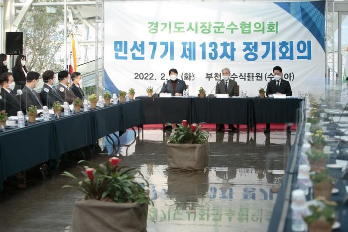 강병일 경기 부천시의회 의장이 최근 부천호수식물원(수피아)에서 열린 민선7기 제13차 경기도시장군수협의회 정기회의에 참석했다. 사진은 정기회의에 참석한 강 의장(가운데 왼쪽)과 경기도 시·군 시장들이 회의를 진행하고 있는 모습. (사진제공=부천시의회)