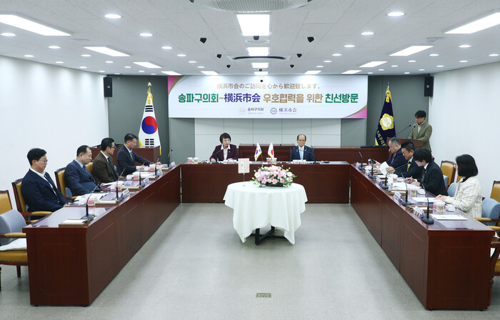 [시민일보 = 이대우 기자] 서울 송파구의회(의장 이혜숙)가 최근 상호 협력 및 우호 증진을 위해 방문한 일본 요코하마 시회 대표단과 환영 간담회를 열고, 도시 간 공동 발전을 도모했다.
