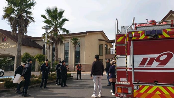 | ▲ 제주부영청소년수련원, 서귀포소방서중문 119센터와 소방훈련. (사진=부영그룹 제공) |