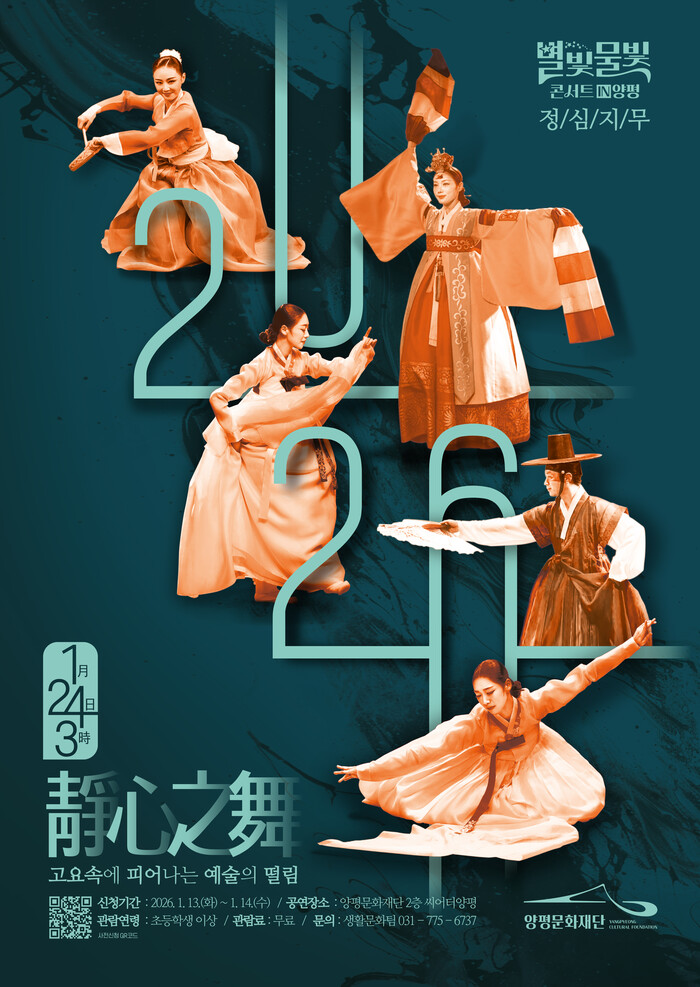 양평문화재단 박신선 이사장은 “새해를 맞아 고요한 춤의 언어로 마음을 정화하고, 전통 예술이 주는 깊은 울림을 군민 여러분과 나누고자 한다”라며 “<정심지무>가 차분한 위로와 새로운 시작의 에너지가 되기를 기대한다”라고 말했다.