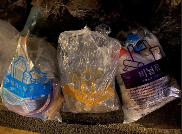 | ▲ 재활용 쓰레기가 재활용 전용봉투에 담겨 배출되고 있는 모습. (사진=관악구청 제공) |