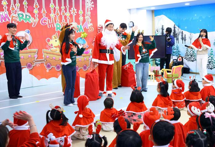 특히, 이날 산타 복장을 하고 어린이집에 깜짝 등장한 이상균 부회장은 아이 한 명 한 명과 눈을 맞추며 곰돌이 모양 바라클라바, 보드게임 등 준비한 선물을 고사리 같은 아이들의 손에 직접 건넸다.